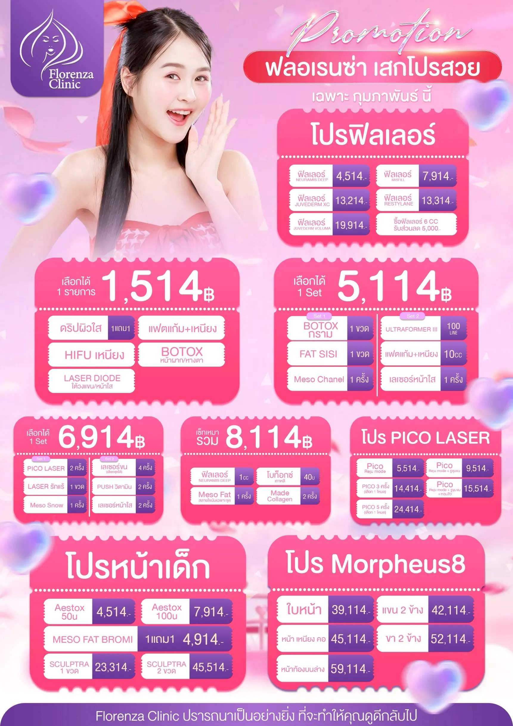Florenza Clinic ศูนย์รวมความงามแบบครบวงจรมีสาขา 4 สาขาได้แก่ สาขา เชียงใหม่ บางใหญ่ รามอินทรา และ ศรีราชา มีหมอผู้เชี่ยวชาญพร้อมให้คำปรึกษา และดูแลคุณอย่างใกล้ชิด เพื่อผลลัพธ์ความงามที่คุณพึงพอใจ มั่นใจในความเชี่ยวชาญ และผลิตภัณฑ์คุณภาพ